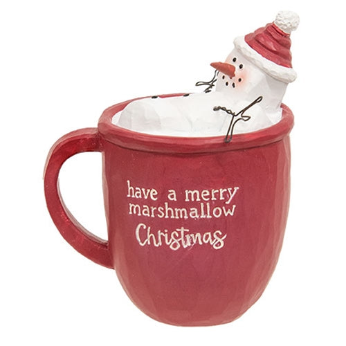 "Have a Merry Marshmallow Christmas" Resin Hot Cocoa Mug w/Snowman is a resin figurine with festive seasonal style. The figurine depicts a marshmal...