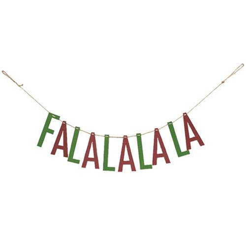 "Fa La La" Wooden Garland is a festive garland hanger that features wood cutout letters on a jute string that spell out, "FA LA LA LA LA." Each let...