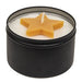 The Apple Pie Moonshine Soy Candle is a clean-burning candle poured into a lidded black tin. The candle is uncolored but accented by a brown molded wax star placed around the wick. Made in the USA, the candle features a sweet apple pie moonshine scent and a primitive patriotic label. The 8-oz tin measures 2.25” high by 3” in diameter.