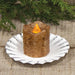 Shabby Chic Fluted Candle Pan is a thin metal candle pan finished with a worn white paint. The pan features fluted edges showing a silver base to the pan. This pan fits a tealight or small candle and works well with everyday and farmhouse decor. Candle pan measures 3.5". Candle sold separately.