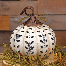 Distressed White Metal Laurel Cutout Pumpkin - 10 In H