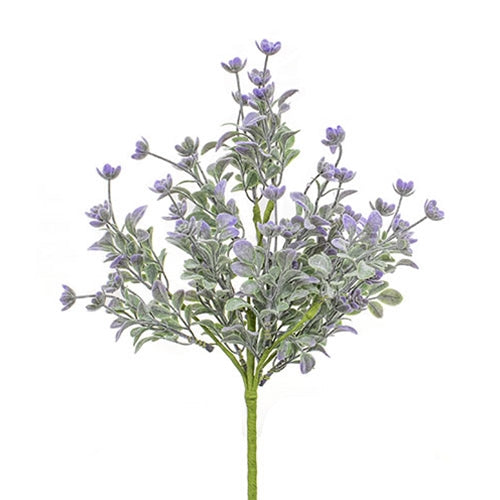 The Dusk Lavender Buds Bush is a decorative floral pick with a flexible, green-wrapped base. The bush is filled with soft, dusty lamb’s ear greener...