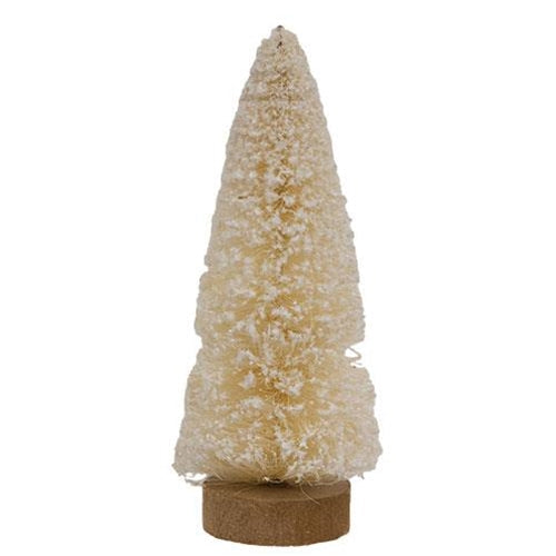 The Flocked Bottle Brush Tree is a decorative tabletop tree figurine made of stiff ivory bottle-brush material. The tree has white flocking for tex...