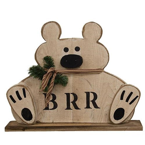 The Brr Polar Bear is a decorative chubby polar bear figurine made of raw, natural wood with an ivory painted finish. The bear has a painted face a...