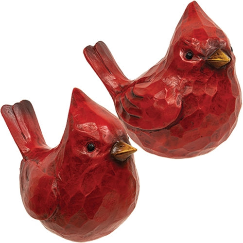 hunky Carved Resin Cardinals are decorative figurines made with carved design. These bright red cardinals feature a slightly weathered look for a m...