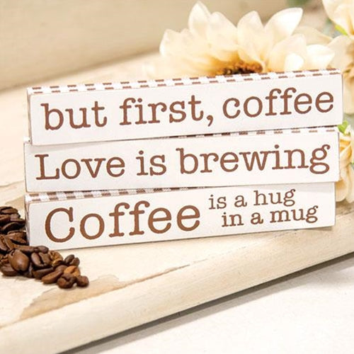 Coffee Is A Hug Mini Stick sells as an assortment of three mini wooden word blocks with coffee themes. Stick has a textured white finish with brown...