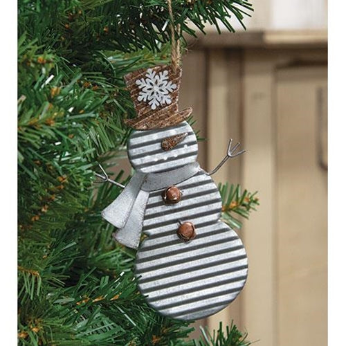 Corrugated Jingle Snowman Ornament is a corrugated, galvanized metal snowman ornament with a white painted, smiling face. Ornament has dimensional ...