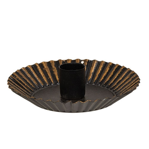 The Distressed Black & Gold Metal Taper Tart Pan is an eye-catching candle holder made with rustic design. The metal pan features crimped edges...