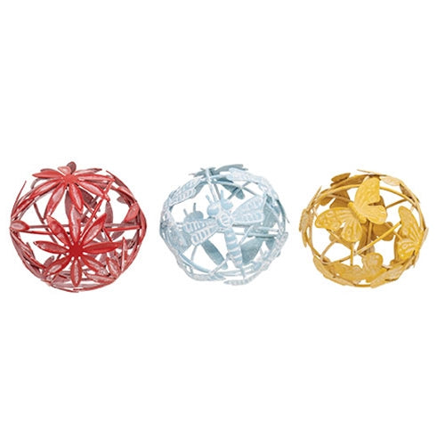 View full detailsDistressed 4" Metal Dragonfly Butterfly or Daisy Ball 3 Asstd.