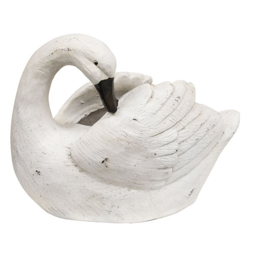The Distressed Resin Carved Look Swan Planter makes a unique addition to garden decor. Made from white resin with a detailed carved look, the plant...