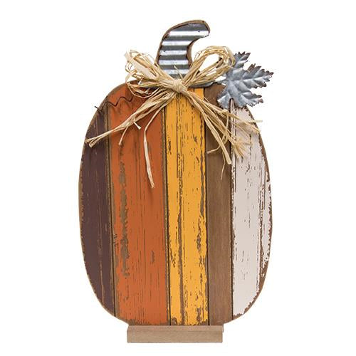 Harvest Slat Tall Pumpkin is a slatted wood pumpkin that is painted in a variety of warm, fall colors. Item is freestanding and includes its own ba...