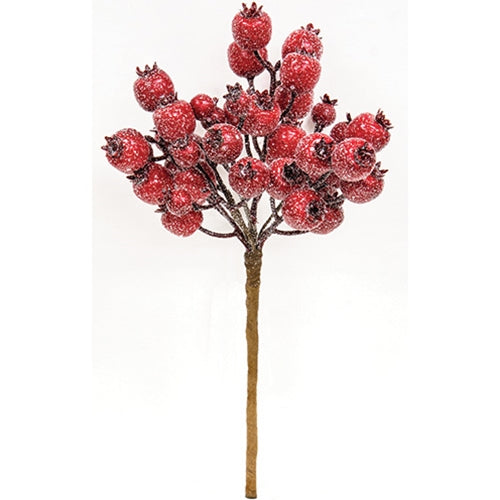 The Icy Red Berry Pick is a decorative wintertime pick with a flexible brown-wrapped stem. The pick features a bundle of round, bright red holly be...