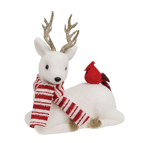 The White Deer with Cardinal makes a charming addition to cozy seasonal decor. Shown in a laying position, the deer features a fuzzy flocked finish...