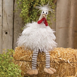 The White Dangle Leg Fluffy Chicken adds a charming accent to country farmhouse decor. Made with textured plush design, the sitter features a fuzzy...