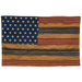 The Primitive Rag Strip American Flag Placemat is a vintage-inspired accent for patriotic decor or everyday display. Shades of navy blue, deep red, and tea-stained cream make up the fabric place mat. Visible stitching provides the placemat with a cozy handcrafted look. Measures 11.5” high by 16.5” wide.