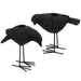 Black Metal Crow Taper Holders add a spooky accent to seasonal decor. The taper holders feature detailed, carved design depicting crows with a matte black finish. Black metal feet support each crow, and one is shown looking to the side while one is shown looking down. Sold as a set of 2, the crows each hold a taper candle (sold separately). Each measures 5” high by 5.5” wide by 3” deep.