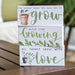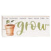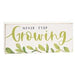 Please note: This Item features a variety of designs which are each sold individually (not as a set). Please add a note in your cart to indicate your preference.  If no style is specified, one will be selected at random by our team (based on availability). All Things Grow Block sells as an assortment of three wooden blocks. Block is freestanding with a distressed white finish and raw edges and it reads, "stop rushing things that need time to grow," "all things grow with love," or, "never stop growing" in a mix of black and green text with watercolor-style floral graphics. Measures 2" high by 5.5" wide by .75" deep.