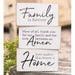 Family is Forever Wooden Block, 3 asstd. are white blocks made of painted wood with inspirational phrases in bold black font. They read, "family is forever," "most of all, thank you for our family and the love between us, amen," or "love makes this house a home." Set them on tables or shelves in any room for a charming look. Measures 3" high by 5.75" wide. Please note: This item features an assortment of designs which are each sold individually (not as a set).