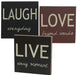 Pressed wood mini plaques with contrasting sides and back, each stenciled with a different Live, Laugh, or Love quote. 4" x 4" square, carved notch in back for hanging. One of three possible designs, our choice. Please note: This item features an assortment of designs which are each sold individually (not as a set.)