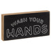 Sink Block Sign is a painted wood block that can be displayed freestanding. It comes in two assorted designs with humorous phrases like, "seat yourself," or, "wash your hands" in bold lettering. Blocks have exposed edges for a rustic finish and look great on a shelf or countertop. Measures 3" high by 5.75" wide by .75" deep. Please note: This item features an assortment of designs which are each sold individually (not as a set).