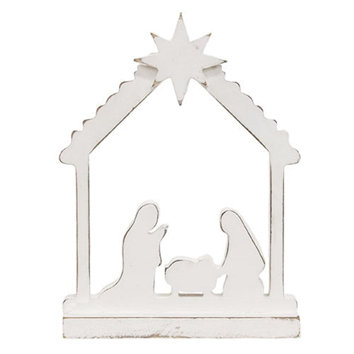 Distressed White Wood Nativity Silhouette Block