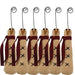 Skinny Snowman Ornaments sell as a set of six primitive, plush snowman ornaments. Each snowman has stitched features and wears a red felt scarf. A curly wire extends from the top of each snowman for hanging as an ornament. Get crafty and glue the snowmen to a base, or place them in a jar to use the wire as a clip for displaying photos. Each measures 4.5" high by .75" wide and .5" deep.