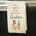 All Hearts Come Gnome Dish Towel is a tan and 100% cotton dish towel that features the image of a festive gnome couple. Towel reads, "all hearts come gnome for Christmas" in red and green text and it features white polka dots for a snowy look. It looks great on a towel bar, hook, or the handle of a range and measures 28" high by 28" wide. Machine-washable.