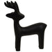 Black Cast Iron Standing Reindeer Figurine is a decorative figurine made from metal with whimsical wintry style. The figurine depicts a reindeer peering over its shoulder with unique, angular stylized design. The reindeer stands freely for stable display on a flat surface. Measures 6" high by 4.75" wide by 1.5" deep.