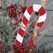 The Medium Candy Cane Planter Stake is a unique seasonal stake to accent floral arrangements and other holiday decor. The planter stake is made from wood in the shape of a candy cane, complete with red and white stripes and a tied jute bow. The stake is painted on both sides for added versatility. A stake or dowel is required for display, and is not included. Measures 12" high by 5.25" wide by .5" deep.