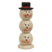 The Triple Stacked Snowman Heads is a decorative figurine made of durable ivory resin material, in the shape of three round stacked snowman heads. The snowmen have smiling faces, carrot noses, and the top one wears a black top hat. This snowman stack displays freestanding, perfect for accenting a riser, tray, or tabletop with a charming and festive touch during the Winter and Christmas season. Measures 4” high and 1.25” in diameter.