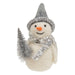 The Silver Snowman Felted Ornament makes a unique addition to winter decor. A friendly face is embroidered into the snowman’s white felted finish, complete with an orange plush carrot nose. The snowman wears a silver hat and a sequined silver scarf, and holds a silver faux tree. A flat base allows for freestanding display. Measures 5.5” high by 3.5” wide by 5” deep.