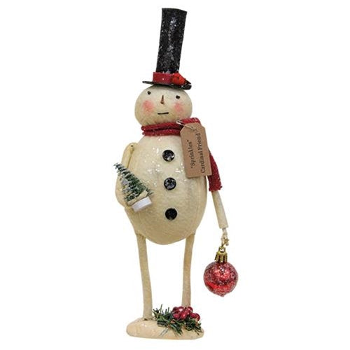 Sprinkles Cardinal Friend is a freestanding fabric snowman doll with a resin base. Snowman wears winter accessories like a black fabric top hat, a ...