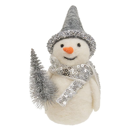 The Silver Snowman Felted Ornament makes a unique addition to winter decor. A friendly face is embroidered into the snowman’s white felted finish, ...