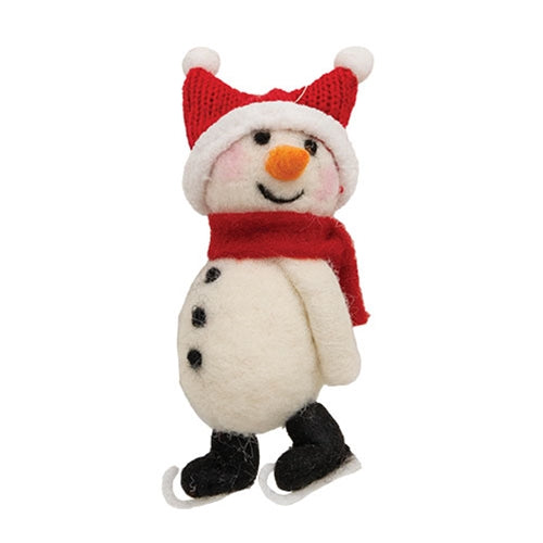 The Skating Snowman Felted Ornament makes a playful addition to festive seasonal decor. The ornament depicts a snowman with a white felted finish a...