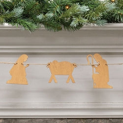 Natural Wood Nativity Garland is a unique hanging piece made from wood with seasonal style. The garland features 11 nativity silhouettes on a jute ...