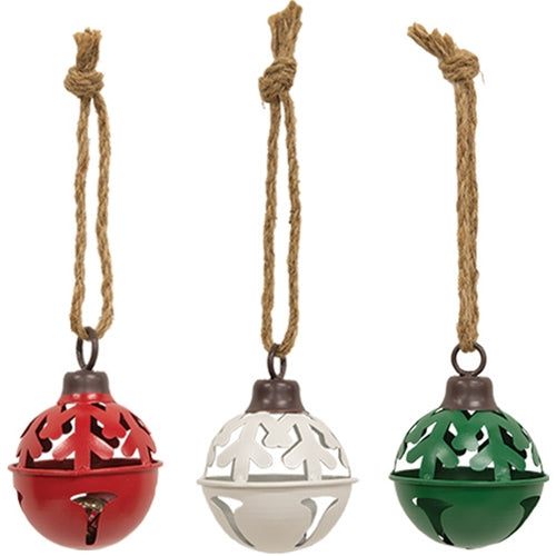 Christmas Tree Cutout Jingle Bell Ornaments are decorative metal jingle bells hung from jute rope. The bells feature a coat of solid paint in assor...