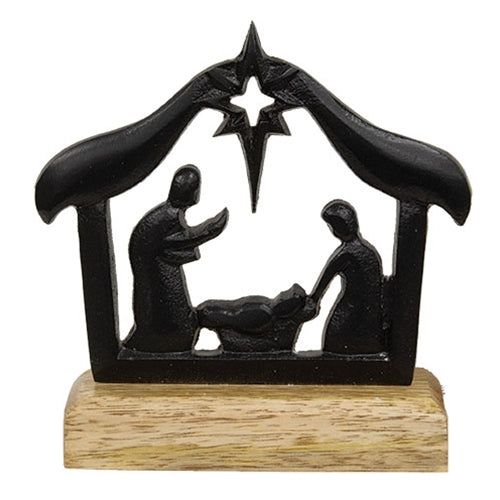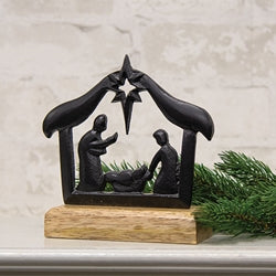 Cast Iron Nativity on Wooden Base is a bold decor piece made from cast iron and natural wood. The piece features a black cast iron depiction of the...