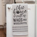 This Home Is Full of Wags and Wigglebutts Dish Towel is a light gray waffle weave towel with black and white striping details. Towel is made from 100% cotton and is machine-washable for easy upkeep. Towel reads, "this home is full of wags and wigglebutts" in black text and measures 28" high by 20" wide with a fabric hanger on the reverse side.