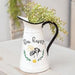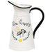 This Bee Happy Enamel Pitcher has a black handle and black trim for a contrast to the white finish. It reads, "Bee Happy" in distressed black lettering that is accented by a bee graphic with green and yellow florals. Use the pitcher to create a beautiful floral bouquet perfect for any room. Pitcher measures 10.5" high by 6" in diameter.
