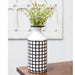 Small Farmhouse Check Enamel Vase is a freestanding enamel container with a matte white finish and a black check pattern and matching black rim. Vase looks wonderful on tables and countertops and pairs well with sitters, framed signs, and various seasonal florals for a charming display in any room. Measures 8.5" high by 3.5" in diameter.