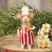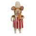 The Chef Mouse with Baguette Felted Ornament makes a unique and cheerful addition to holiday or everyday decor. With detailed design and a fuzzy felted finish, the ornament depicts a brown and cream-colored mouse wearing a white chef hat and a red and white striped apron. A detailed baguette with a toasted look sits in his apron pocket, and a clear string hanger allows for versatile display. Measures 5.5” high by 2.5” wide by 2” deep.