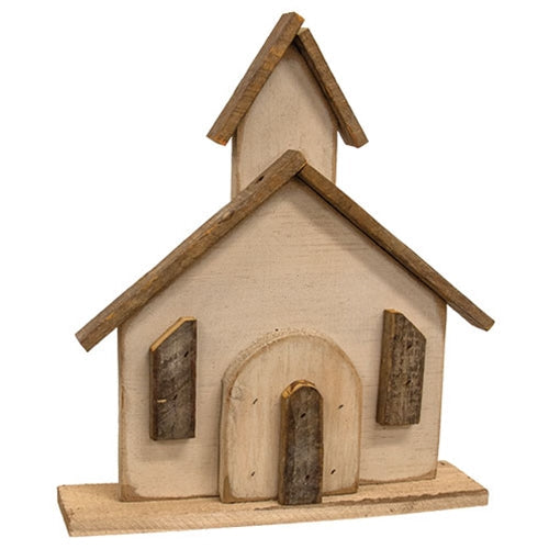 The Rustic Layered Church is a decorative figurine in the shape of a traditional church made of chunky lath wood with a raw, unfinished texture. Th...
