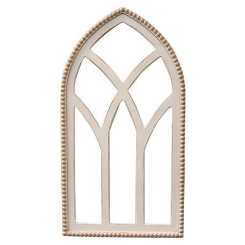 Beaded Cathedral Window is a wooden cathedral styled window with a distressed white finish and two d-ring hangers. It looks beautiful hanging with ...