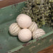 The Natural Striped Rag Balls are a set of six decorative bowl filler balls, all wrapped in strips of rustic linen-style fabric. The fabrics feature an ivory color or gray and ivory stripes, making them perfect for year-round display, pairing especially well with a farmhouse theme, placed in a bowl or tray as filler. Each ball measures 2.5" in diameter.