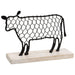 Black Chicken Wire Cow is a freestanding decor piece featuring everyday farmhouse style. Made with wood and chicken wire, this piece depicts the silhouette of a standing cow. Measures 7.25" high by 10" wide by 3" deep.