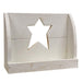 The Farmhouse White Hanging Shelf is a decorative hanging piece made of raw, distressed lath wood with a white painted finish. The shelf has a shallow boxed base and the back panel features a primitive star cutout, making it a great piece for everyday or seasonal patriotic use. Display this shelf hanging on a wall or placed standing on a flat surface, filled with greenery, florals, bottles, candles, or other household items and decor. Measures 12" high by 15.5" wide by 5" deep.
