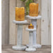 Farmhouse White Spool Candleholder is a wooden taper holder with a distressed, white painted finish. The top of the spool has a .875" diameter opening for holding and displaying a taper candle. Measures 9.5" high by 5" in diameter.