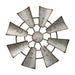 Galvanized Metal Hanging Windmill is a galvanized metal windmill wheel with distressed, rusty trims. Item can be used to add a rustic farmhouse element to the decor of any room. Pair with our other decorative windmill pieces to create an eye-catching feature wall. A metal loop hanger is soldered on for wall displaying. Measures 6.5" in diameter by .25" deep.