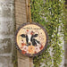 The I Love Fall Most of All Cow Ornament is a decorative round wooden ornament with a yellow background and gray floral border. The ornament features a cow portrait among autumnal pumpkins and florals and reads "I love Fall most of all" in black script lettering. The top of the ornament includes a jute rope hanger, perfect for using to hang on a tree, wall, hook, or knob. This ornament brings a rustic farmhouse touch to the home during Fall, and measures 5" in diameter. Made in the USA!