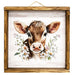 The Pretty Cow & Flowers Print is a decorative wooden print with a distressed white background held inside of a chunky wooden frame with a brown finish and natural grain. The print features portrait-style artwork of a brown highland cow surrounded by whimsical florals. Display this sign freestanding or hanging on a wall using the jute hanger at the top, bringing a sweet farmhouse touch to the home. Measures 12” by 12” and 1.5” deep. Made in the USA!